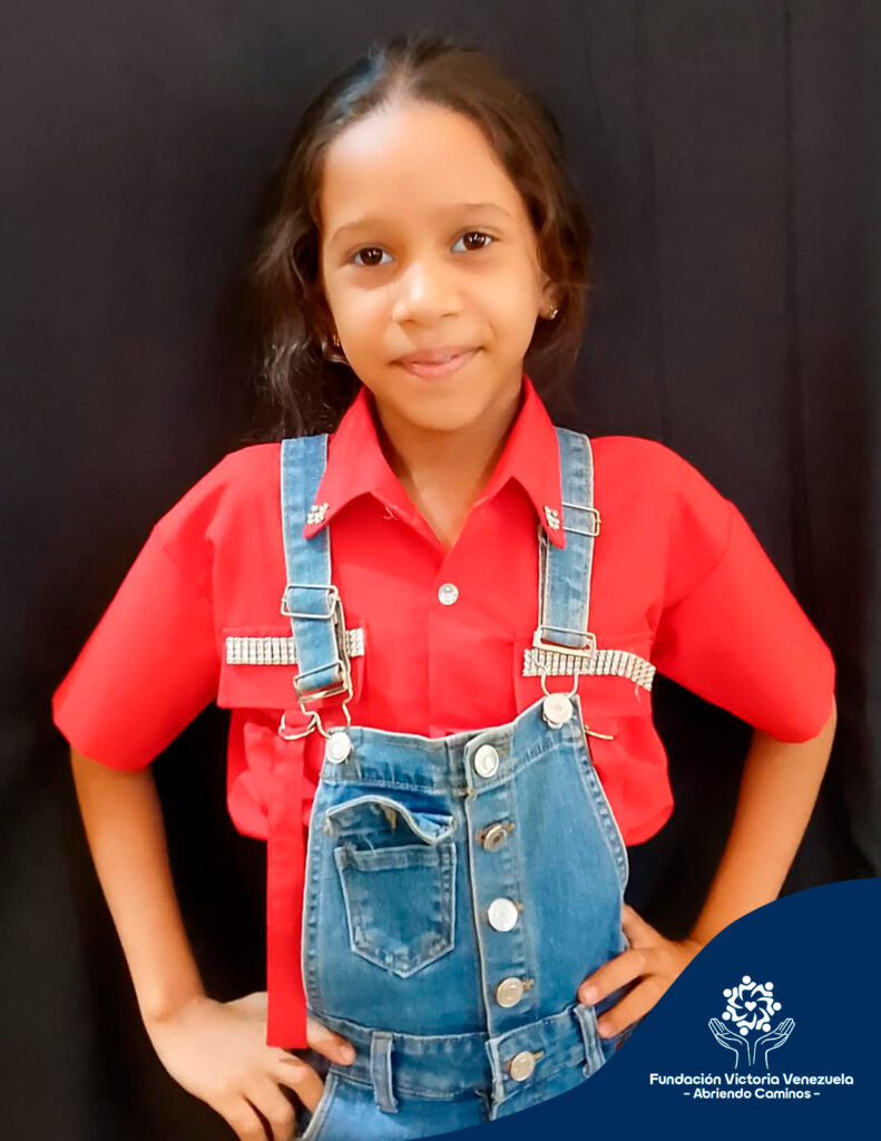 Joscarlys tiene 9 años, vive en el estado Bolívar, y está en cuarto grado. Le gusta estudiar y coser. Cuando sea grande ella quiere ser repostera.